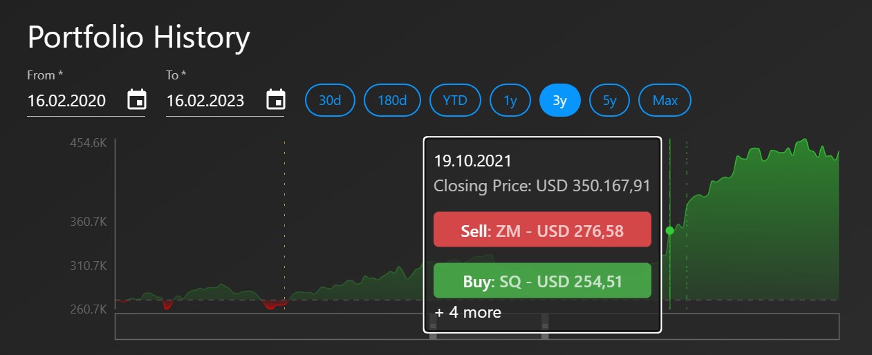 Interactive charts for performance development over any time period, supported by modern visualization tools.