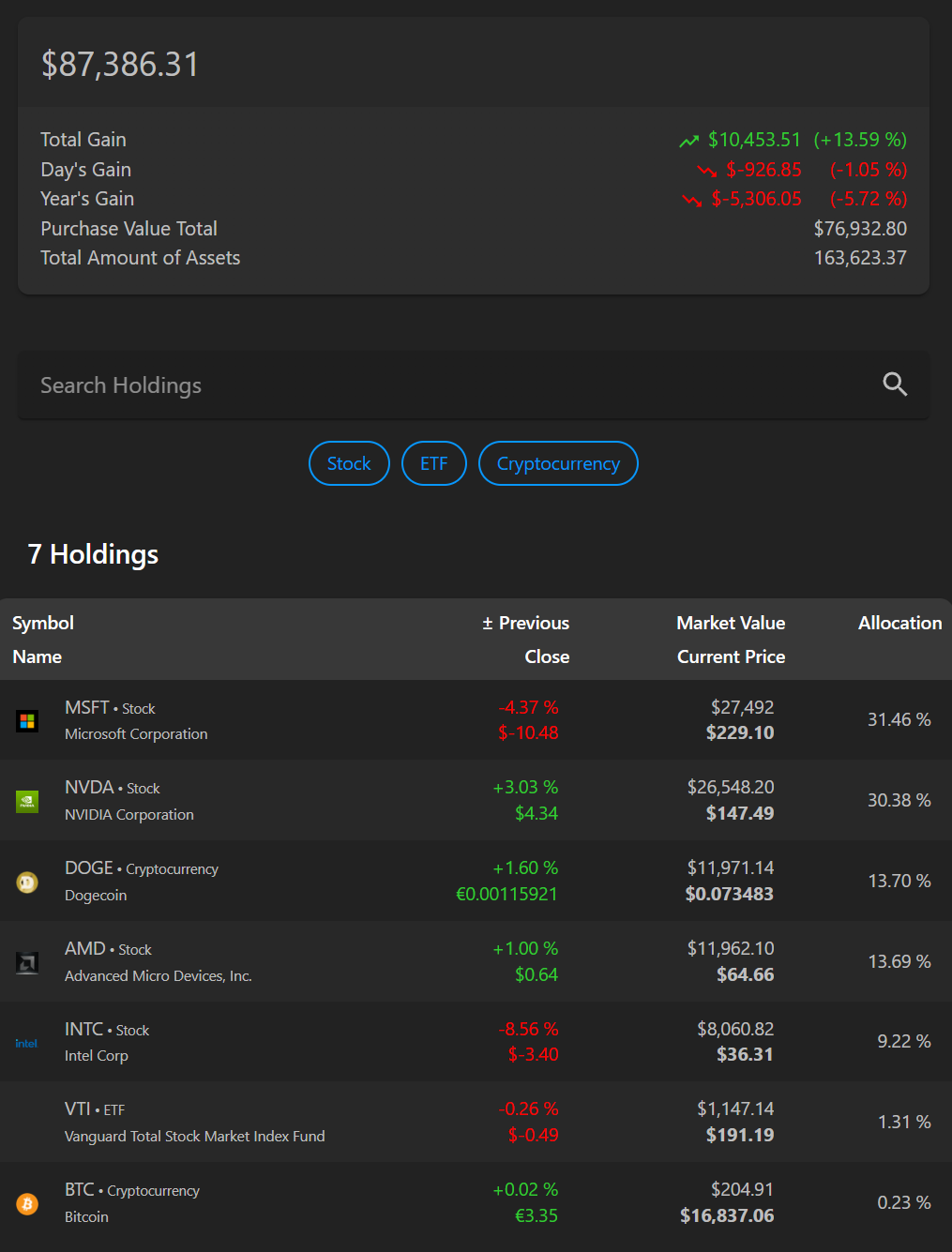 Real-time dashboards show holdings, profit/loss, and asset distribution – interactive and clear.