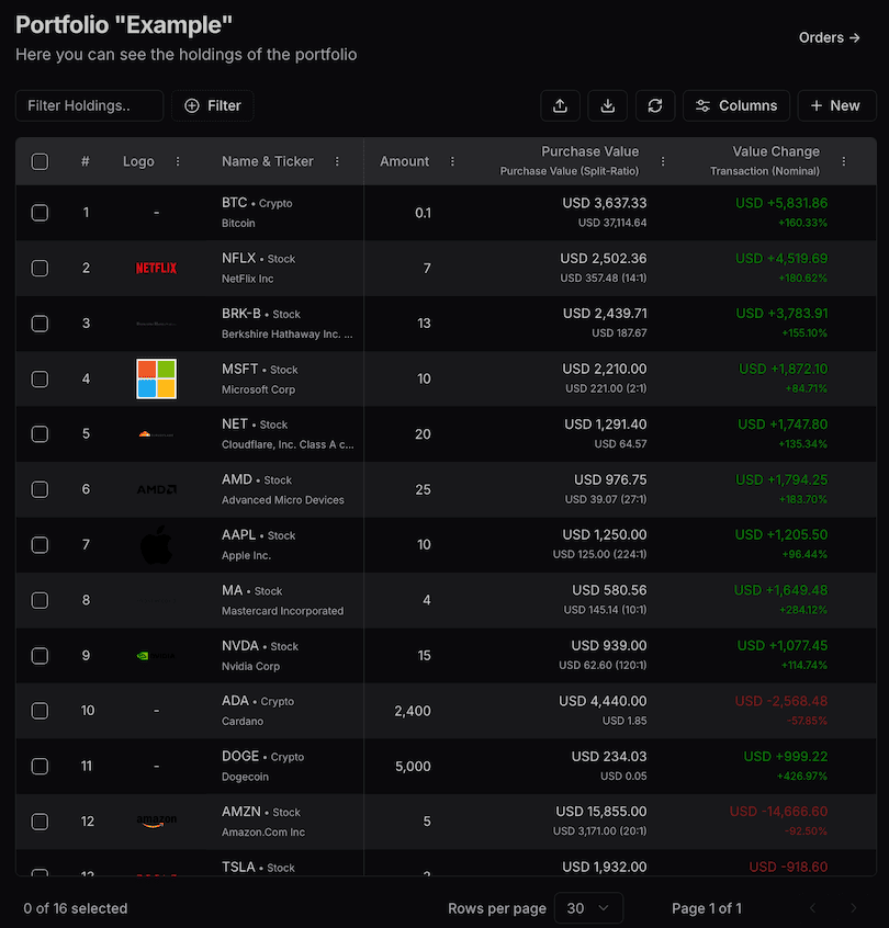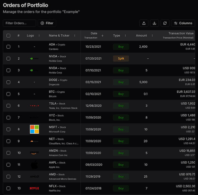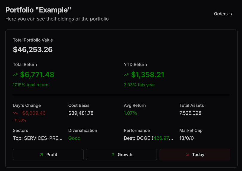 The "Orders" interface lets you track and execute trades efficiently, ensuring you never miss an opportunity in the market. This feature integrates seamlessly with your portfolio, providing a holistic view of your investment activities.