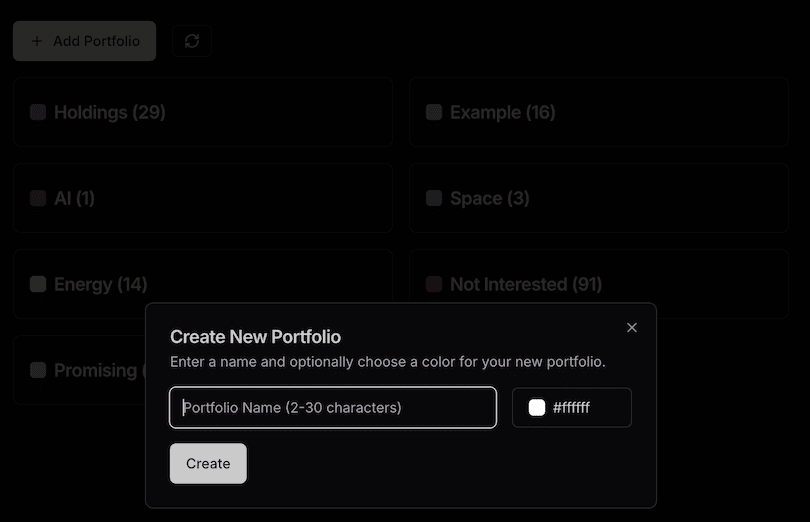 With options to create and manage multiple portfolios, as seen in the "Portfolios" interfaces, you can diversify your investments across different asset classes like stocks, crypto, and more. This flexibility ensures you can tailor your strategy to fit your financial objectives.